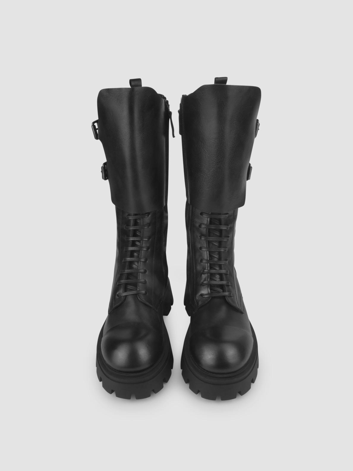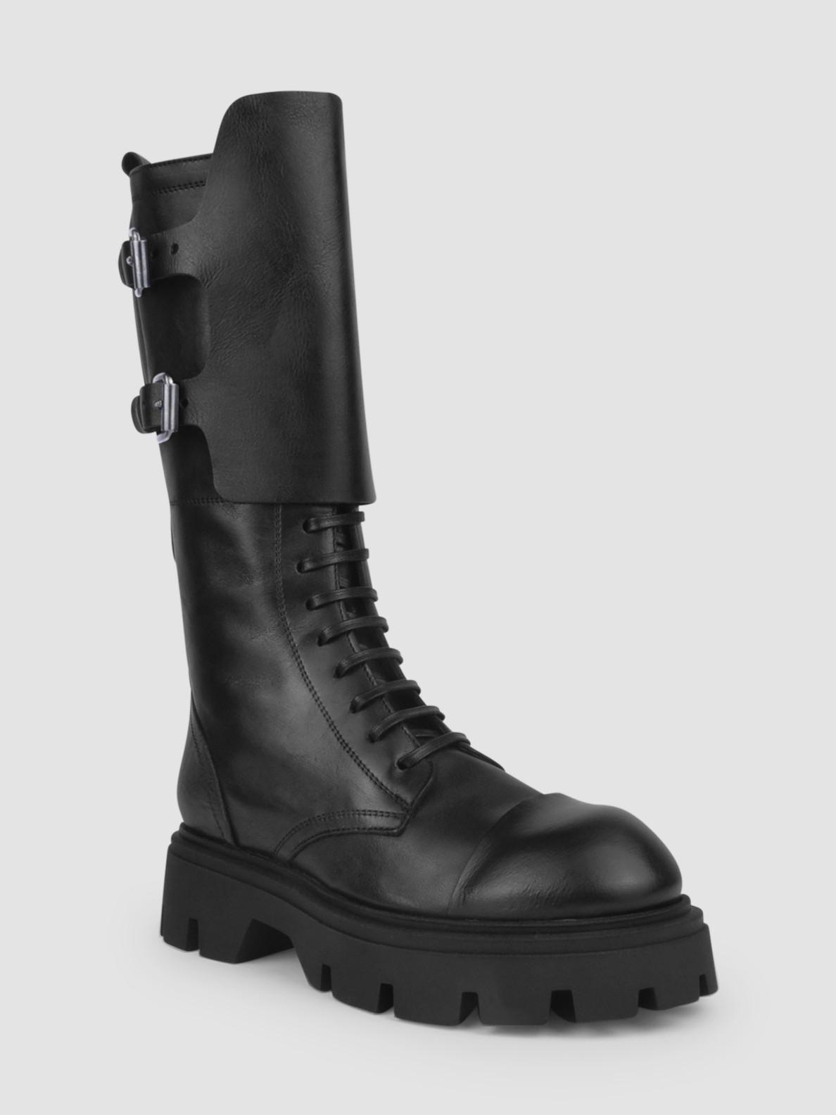 The black leather combat boots combine character and sophistication in a timeless design. Crafted from high-quality leather, they offer a comfortable fit and excellent durability. The sturdy sole and meticulous details make them ideal for tackling each day with bold style. Perfect for urban, casual, or more edgy looks.