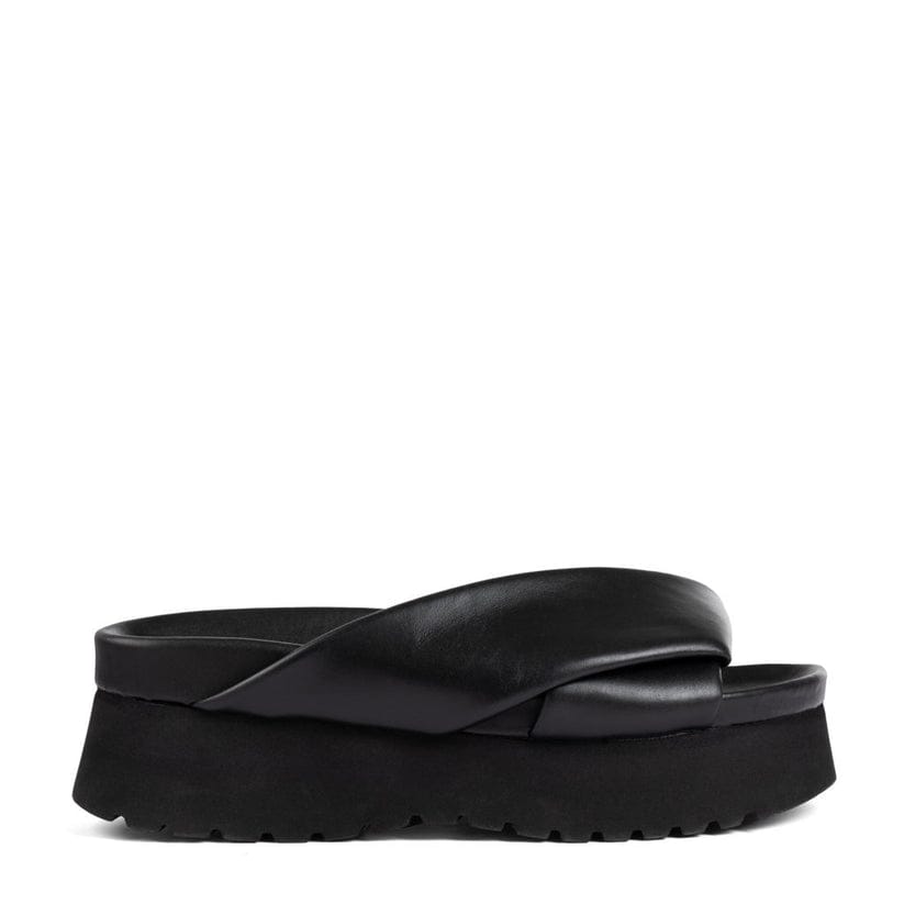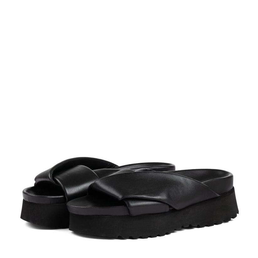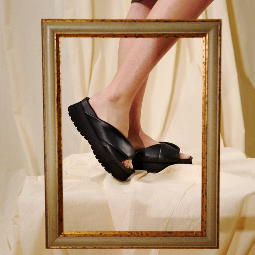Discover the KIN black leather slipper, the model that combines elegance and practicality. Made with top-quality leather, this slipper is perfect for those looking for a bold and trendy look without sacrificing comfort. The internal padding ensures optimal support for your feet, guaranteeing a feeling of well-being that lasts all day.