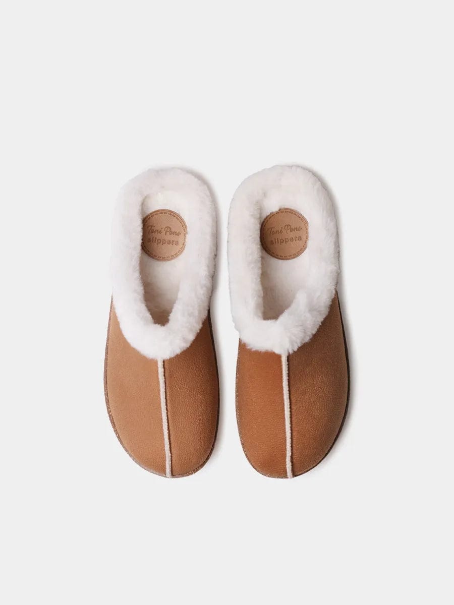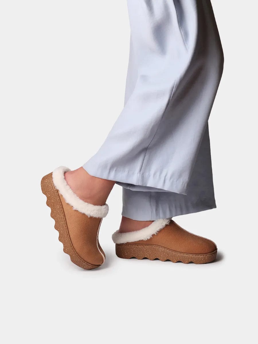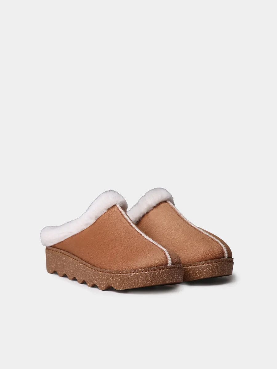 METZ. These women’s mule-style slippers are made from polyester. The insole is lined with soft fabric, giving the slipper great warmth. The platform sole is 3.5 cm high, making it perfect for both indoor and outdoor use. This model fits true to size. If you’re between sizes, we recommend choosing the smaller one.