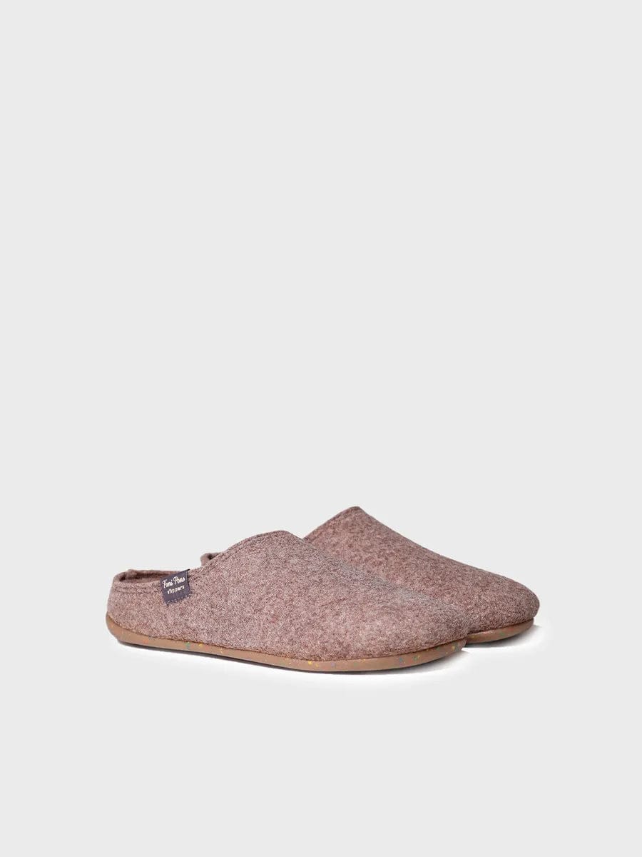 MONA-FR. This women’s slipper belongs to the RECYCLED collection. It is made of felt created from recycled plastic bottles. Its flexible and light sole makes it a very comfortable slipper perfect for walking around the house. This model fits the usual size; if you are between two sizes, choose the larger one.