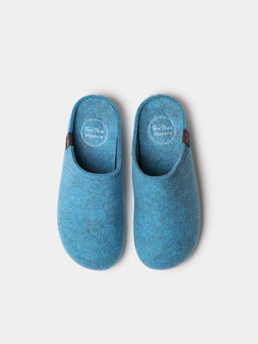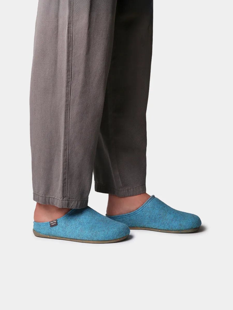 MONA-FR. This women’s slipper belongs to the RECYCLED collection. It is made of felt created from recycled plastic bottles. Its flexible and light sole makes it a very comfortable slipper perfect for walking around the house. This model fits the usual size; if you are between two sizes, choose the larger one.