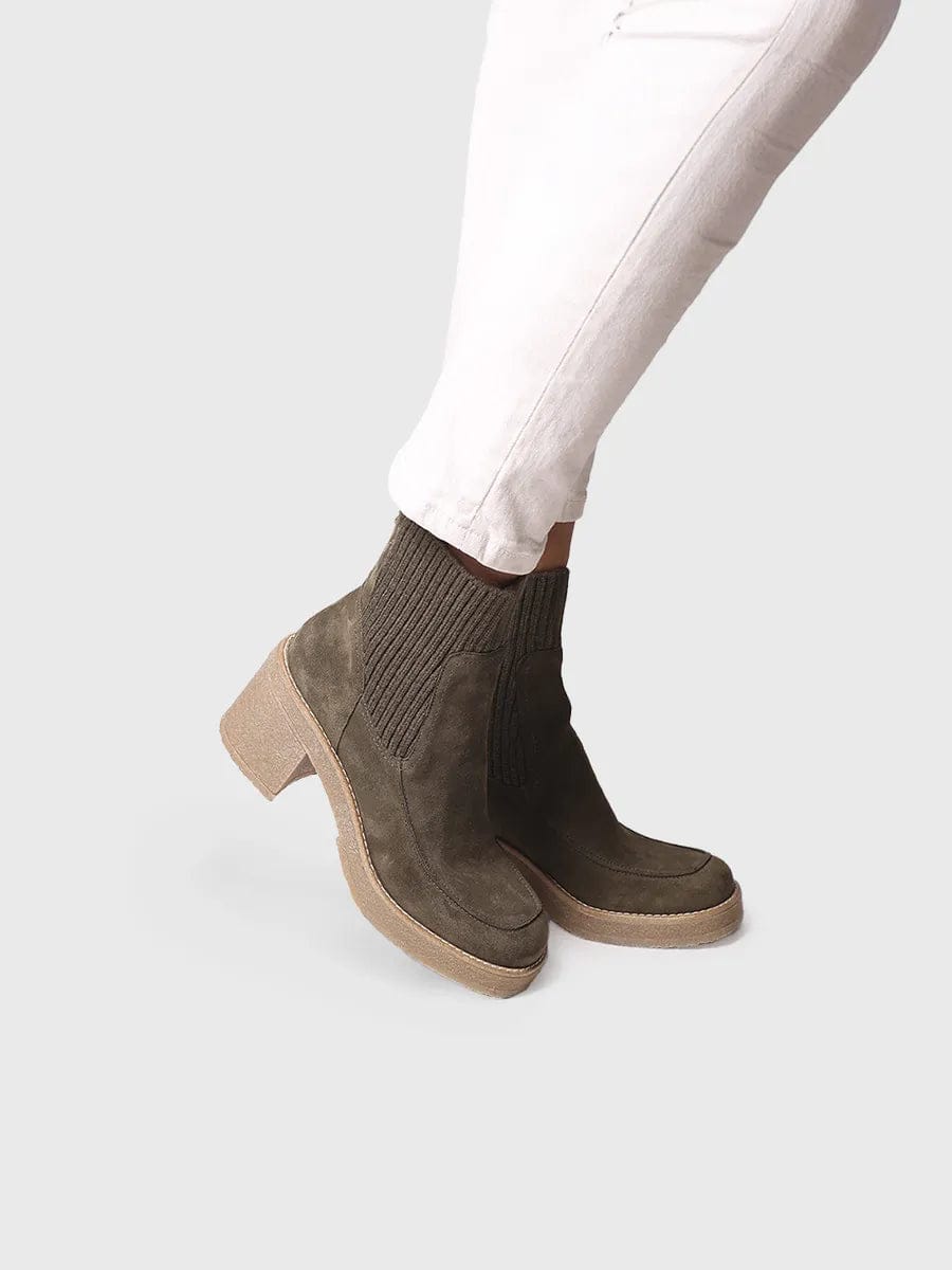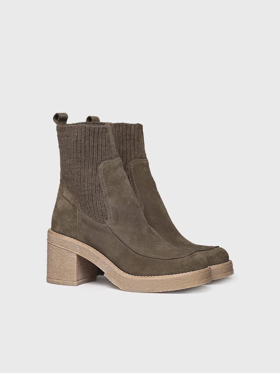 PRAGA-SY. This high ankle boot for women is a very comfortable and versatile option thanks to its wide heel. An ideal option for both going to the office and completing more casual looks. Its elastic fabric makes them very easy to put on and take off. This model fits the usual size; choose a larger size if you are between two numbers.
